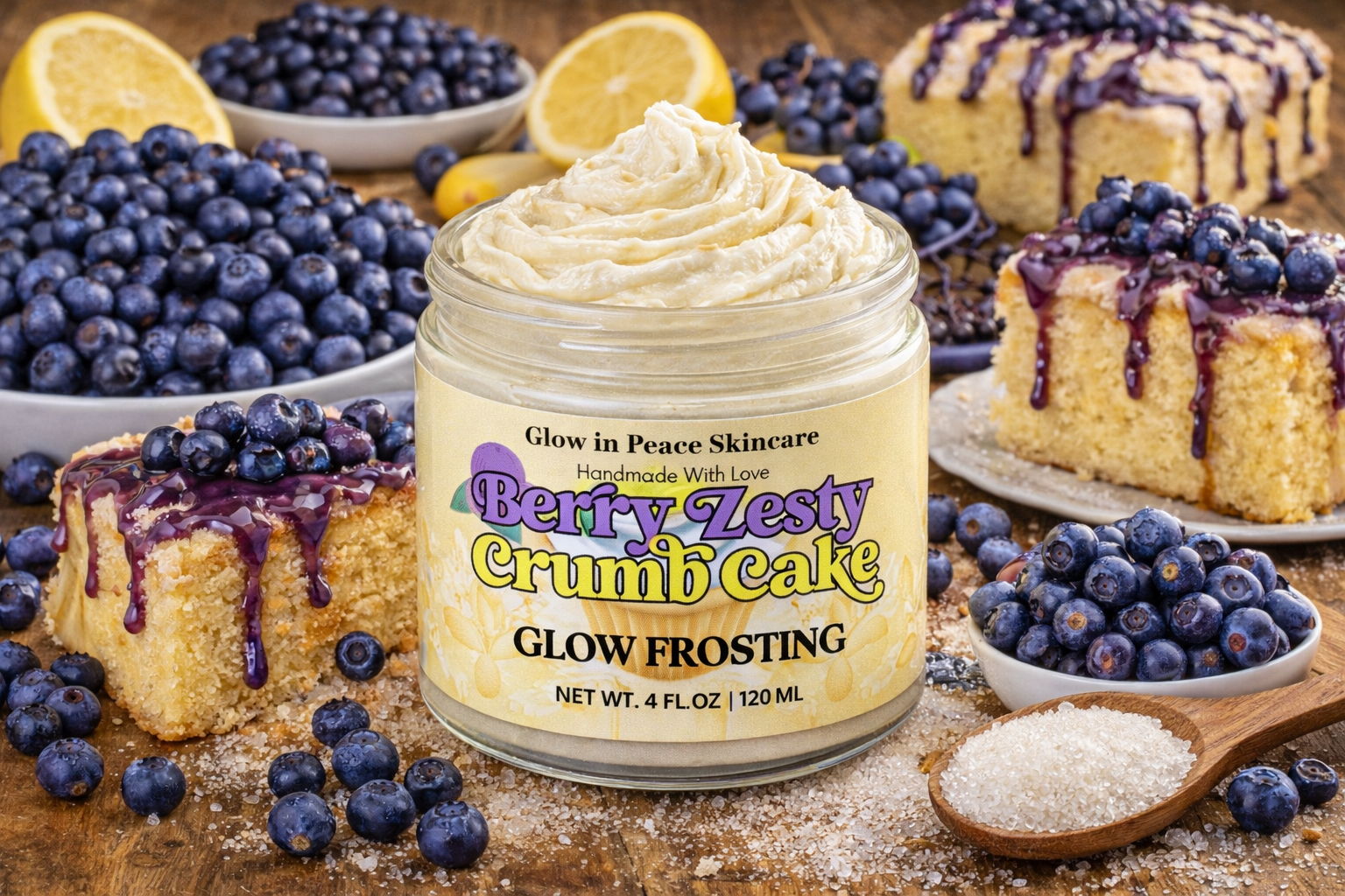 Berry Zesty Crumble Cake Glow Frosting 🍋🫐✨ – A bakery-fresh treat with a fruity twist! This rich, creamy frosting swirls fluffy whipped lemon cake with layers of sweet vanilla frosting, then adds just a hint of juicy huckleberry for that perfect berry pop. 🍰💛 It’s zesty, sweet, and oh-so comforting—like a warm crumb cake straight from the oven, made to leave your skin soft, glowing, and smelling irresistible. 💖