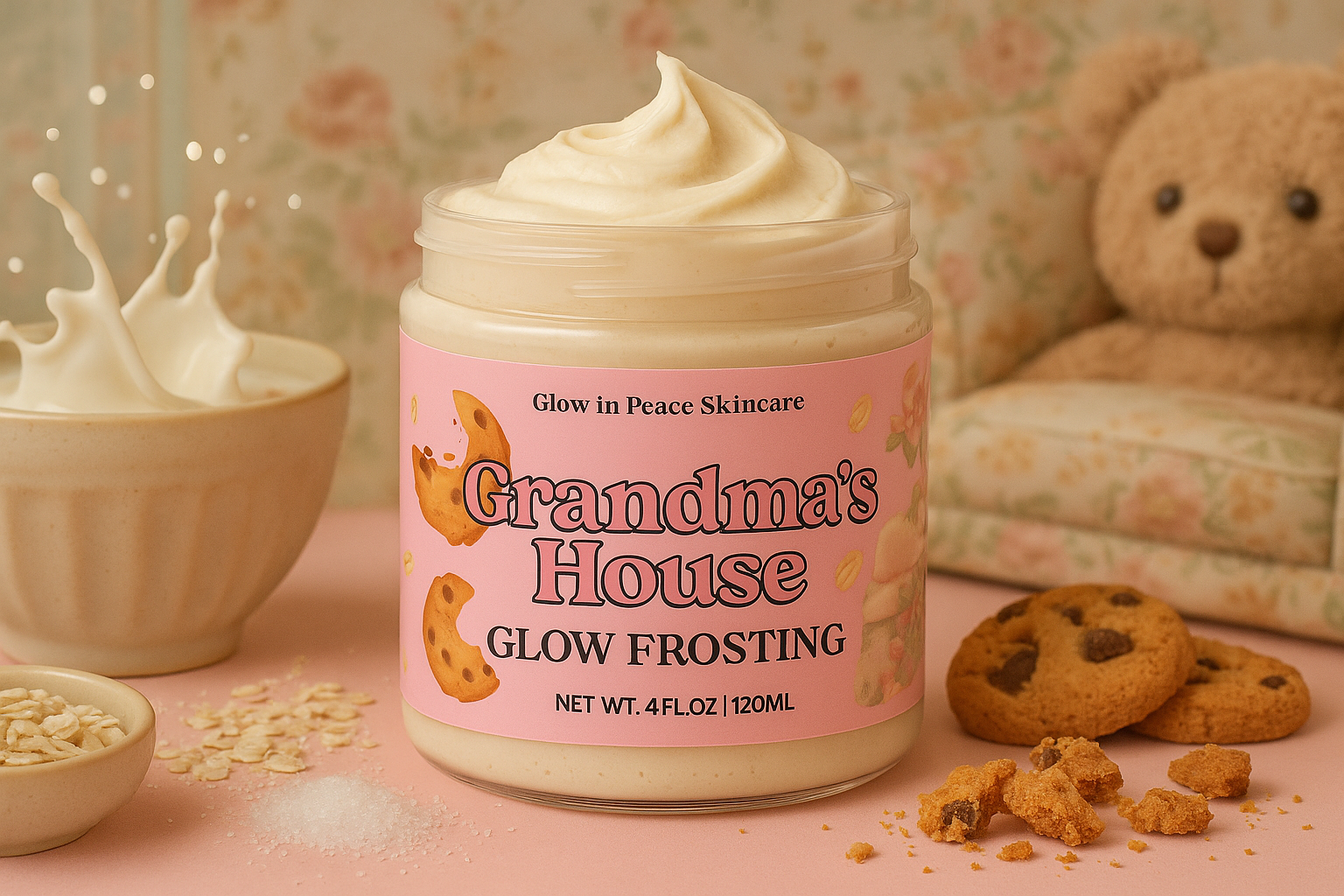 Grandma’s House Glow Frosting 🍪✨ – Warm, sweet, and oh-so comforting—just like stepping into grandma’s kitchen. Freshly baked love fills the air with creamy oatmeal milk, gooey milk chocolate chips, and a swirl of rich vanilla and brown sugar. 🥛🍫 A splash of sweet milk and sugar and the softest drizzle of rum tie it all together, wrapping your skin in pure homemade goodness. Cozy, delicious, and nostalgic—this is comfort you can wear. 💖🏡